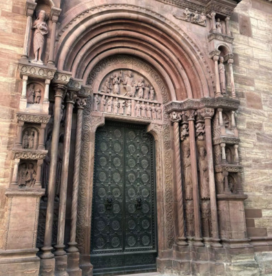 This is St. Gall‘s door and it was created in the early 12th century. It is considered one of the best examples of Romanesque architecture in this country. The theme is the end of the world as found in the gospel o... Read More