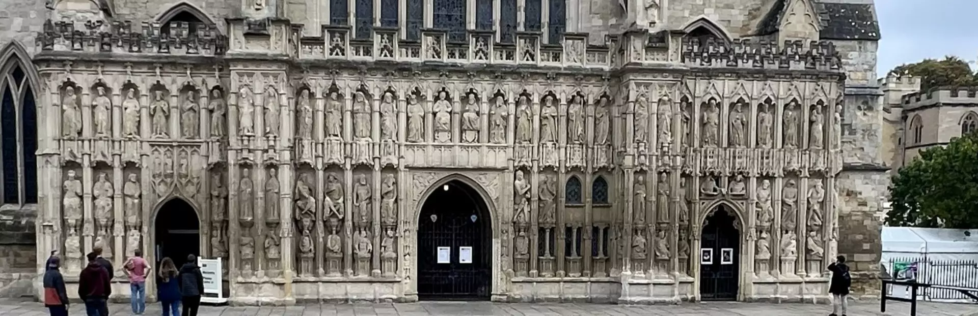 The tour begins in the open square in front of Exeter Cathedral. Nearby the County of Devon War Memorial.