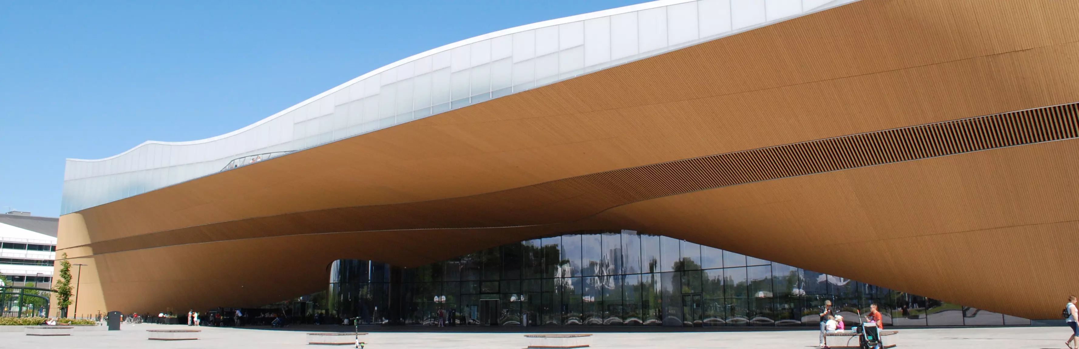 - Admire the building’s sustainable Finnish spruce façade and innovative design by ALA Architects