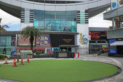 The tour begins next to the large circle of fake grass in front of The Peak Galleria building, 118 Peak Rd, The Peak, Hong Kong.