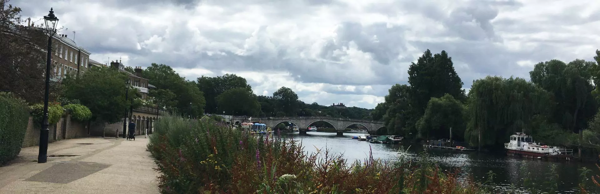 Our tour starts outside the Richmond Theatre where you’ll hear how the area has been a place of entertainment from the time of Shakespeare and Elizabeth I. As you make your way along the green towards the Thames River, I’ll point out some of the town’s interesting architecture. You’ll see the over 500-year-old palace gateway that led to the Tudor palace, and Virginia Woolf’s house where she wrote her first novel, ’A Voyage Out’. You’ll reach the banks of the Thames where I’ll show you the uninhabited Corporation Island and point out the flood warning sign by the White Cross Hotel. The walk ends beside the eighteenth century Richmond Bridge, the oldest existing bridge in the London area.