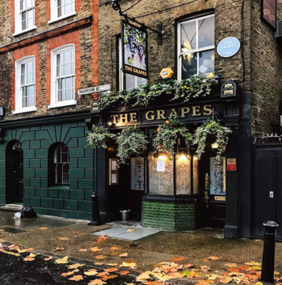 The Grapes pub on your left, originally called The Bunch of Grapes, has stood on the pebbled Limehouse Reach for over 450 years. From directly below The Grapes, Sir Walter Raleigh set sail on his third voyage to the New World.