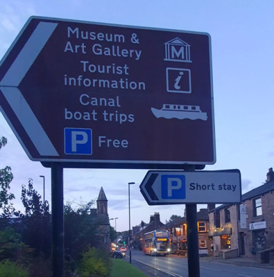 From the main high street in Uppermill you'll find a co/op mini supermarket. The street next to it will take you to the Civic Hall. At the right of the hall is the entrance to the car park go up there and the main door can be found. There's also a community toilet just inside the building.
