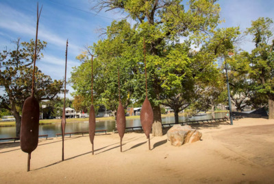 The five shields that the tour starts from are located just across from the Artplay building on the banks of the Birrarung Mar.
