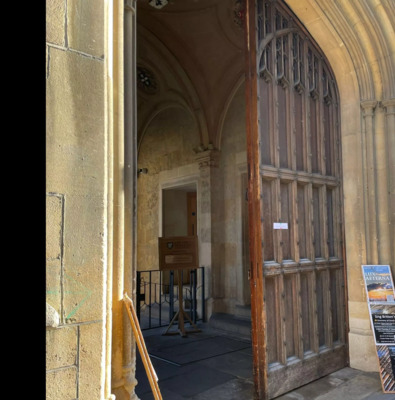 The tour starts on Broad Street in front of the large gates of Exeter College.