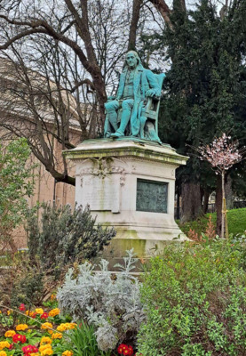 The tour starts at Place des Etats-Unis, the square where you’ll see a bronze statue of George Washington and the Marquis de Lafayette shaking hands, a nod to their father-son relationship. You’ll hear about Franklin’s relationship with both men, as well as other key Revolutionary-era players like General Rochambeau and Admiral de Grasse as you make your way to Trocadéro Gardens. You’ll view Palais de Chaillot (a historical palace), traverse Place du Trocadero (a square and terrace overlooking the gardens of the same name), and walk through a secret garden to see Rue Benjamin Franklin (Benjamin Franklin Street). I'll show you the site of the 18-acre estate where Franklin lived, the Hotel de Valentinois (sometimes called the Benjamin Franklin House), where grand parties celebrated the earliest Fourths of July.
