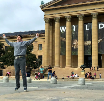 In front of you is one of Philadelphia’s top tourist attractions, The Rocky Statue. It’s not uncommon to see a queue of visitors lined up to get a picture with this film icon.
