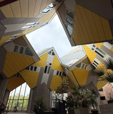 - Take in the iconic yellow Cube Houses designed by Piet Blom, in what feels like an urban residential village