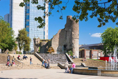 The tour start in Castle Square in the City Centre of Swansea. It is about a ten minute walk from Swansea's High Street Railway Station or the Quadrant Bus Station. The square itself has a fountain in the middle and steps that lead up to the old ruined castle. The tour will start at the top of those steps and you start by descending them.