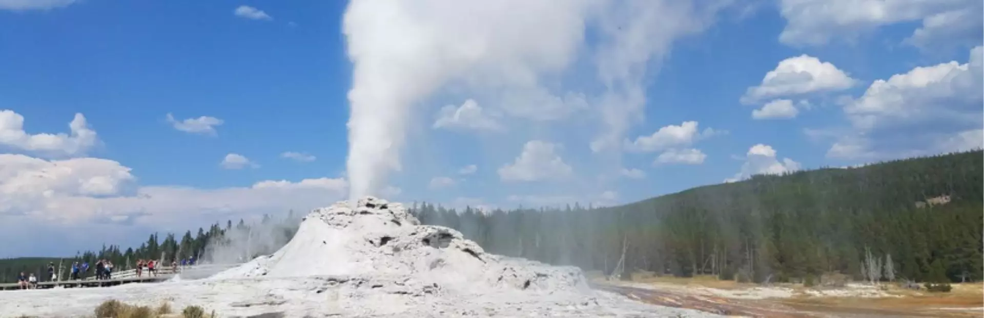 This tour goes through an active geyser basin. Visitors are required to stay on the boardwalks at all times. It is illegal to touch or throw anything in any geothermal feature. Pets and smoking are prohibited in thermal areas.